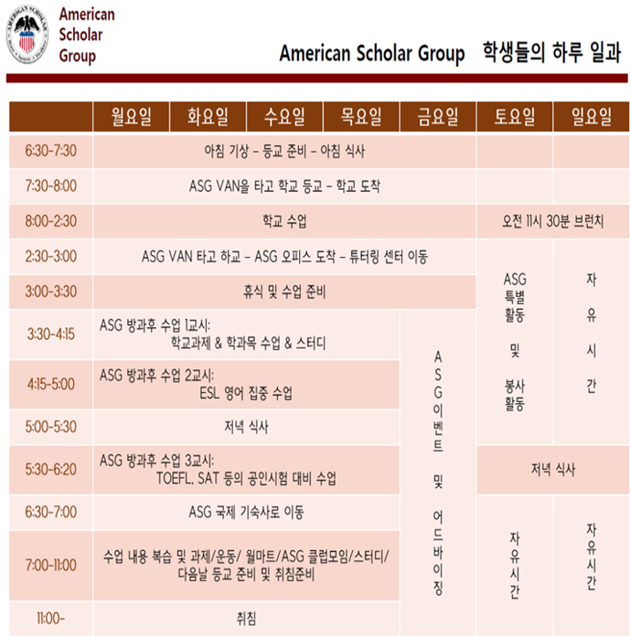 ASG 엄마동반 스쿨링 일정$비용