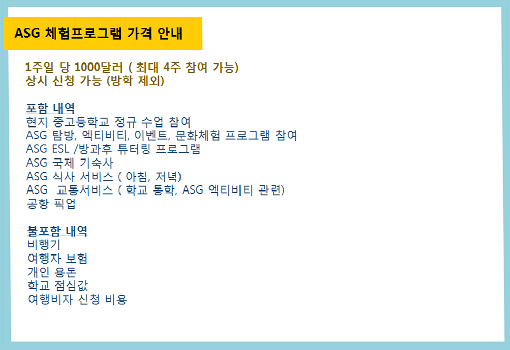 ASG 체험캠프 일정$비용